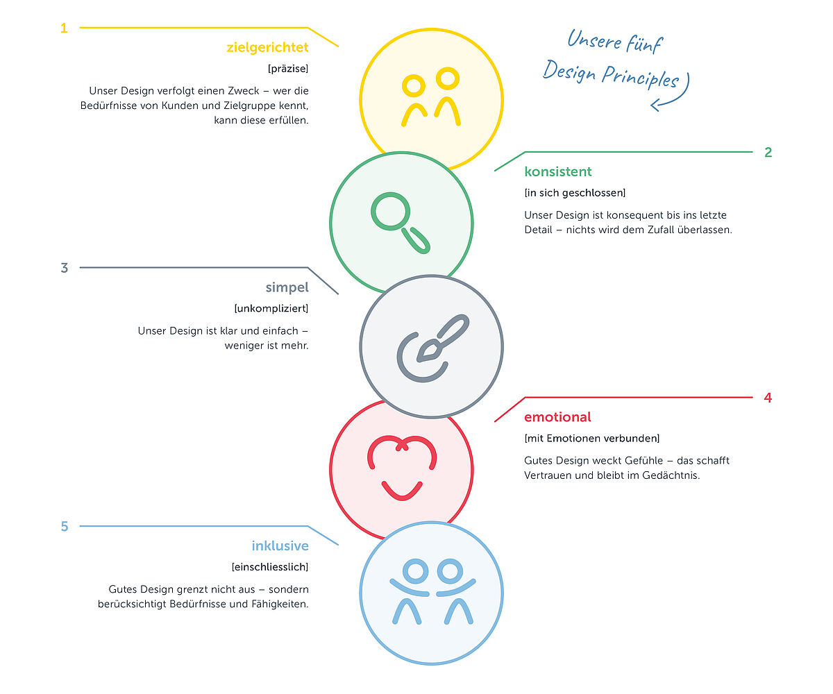 Gerne helfen wir Ihnen bei er Erarbeitung eines überzeugenden Markenerlebnisses auf Basis unserer 5 Design-Principles – von der ersten Idee bis zur erfolgreichen Umsetzung massgeschneiderter Lösungen.