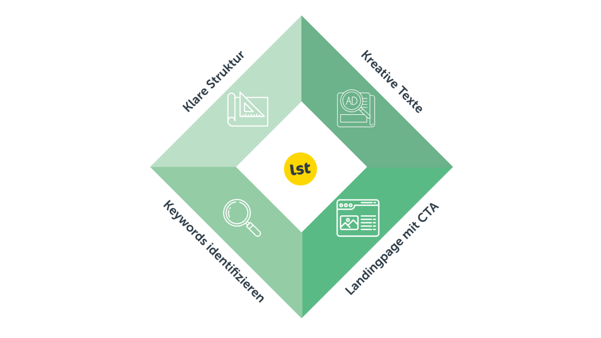 Eine saubere Struktur der Kampagnen, eine klare Ausrichtung auf definierte Ziele und ein tiefes Verständnis für Ihre Zielgruppe sind Grundvoraussetzungen für erfolgreiche Ads. Besonders wichtig ist auch die Verknüpfung mit optimierten und zielführenden Landingpages, die exakt auf die jeweilige Kampagne abgestimmt sind und den Nutzer via effektiver Call-to-Action zur gewünschten Aktion führen.