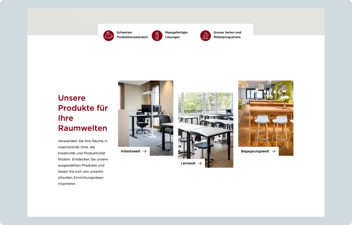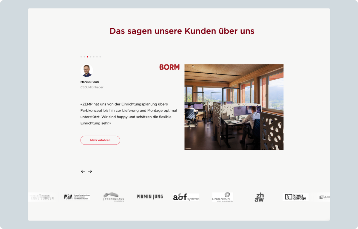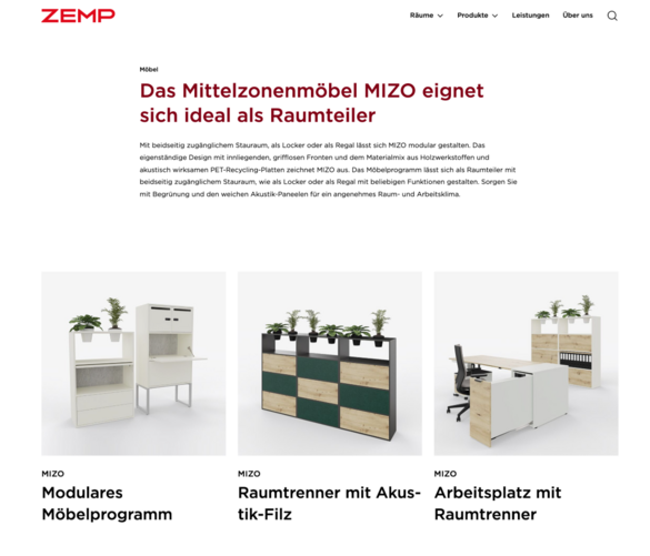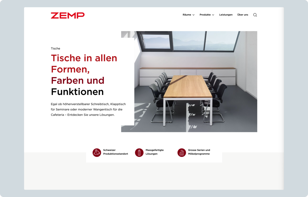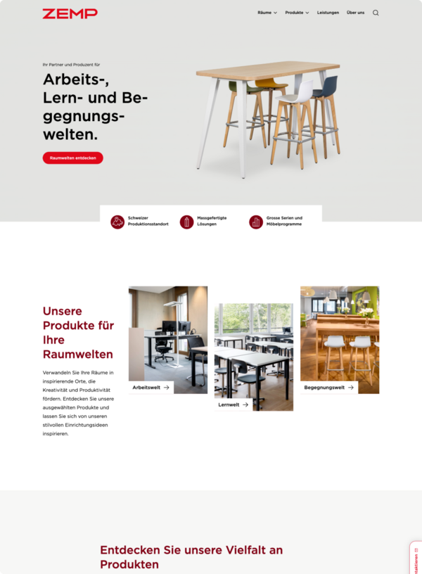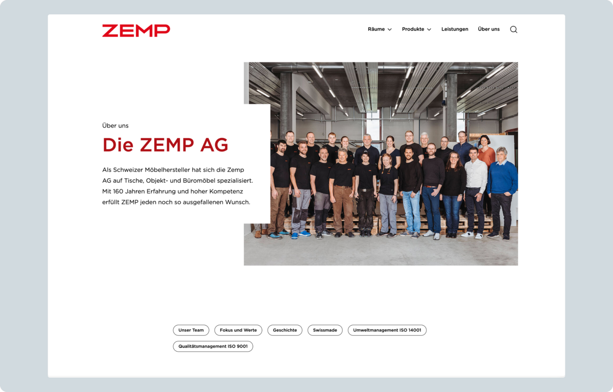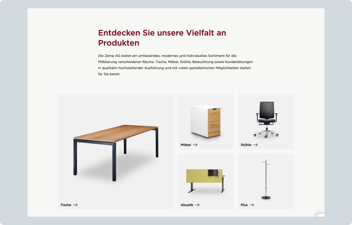 Als zukunftsorientierter Anbieter von hochwertigen Objekt- und Büromöbeln stand die Zemp AG vor einer klaren Aufgabe – der digitale Auftritt sollte nicht nur modern und ansprechend sein, sondern auch der Schweizer Qualitätsphilosophie gerecht werden. Die neue Plattform sollte ganz nach dem Prinzip «mehr Bilder, mehr Emotionen» gestaltet werden.