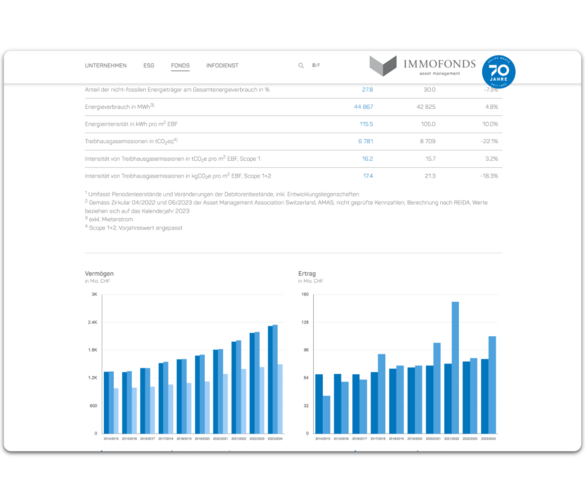 Die grosse Besonderheit an der neuen Plattform ist die Schnittstelle zu eliasPublisher – ein Online-Redaktions -und Publikationssystem, das unsere Agentur in den letzten Jahren selbst entwickelt hat. Es ermöglicht der Immofonds eine crossmediale Kommunikation ohne Mehraufwand. Durch die TYPO3-Anbindung kann Immofonds ihre Publikationen wie beispielweise Geschäftsberichte oder Factsheets automatisiert und per Knopfdruck auf der neuen Website ganz ohne manuelle Arbeit veröffentlichen.