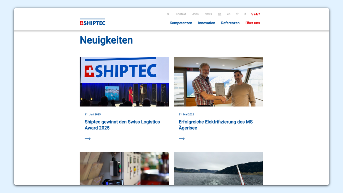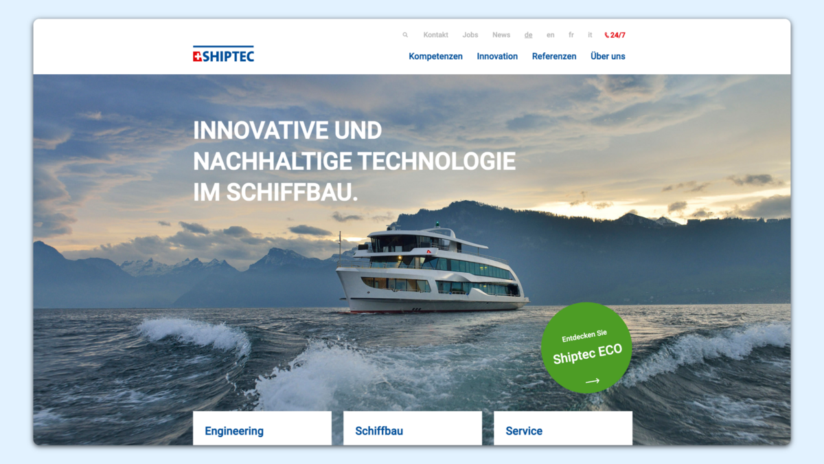 Eine neue, moderne und mehrsprachige Plattform für die Shiptec AG sorgen für eine digitale und internationale Marktpositionierung. Wir haben das Projekt umfassend begleitet – von der Konzeption über die Gestaltung bis hin zur Umsetzung.