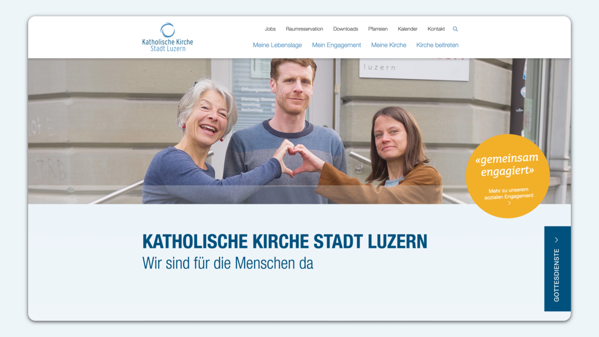 Das Ziel der neuen Website war es, eine solide, nachhaltige und ausbaubare Websiteinfrastruktur auf modernen Standards zu schaffen. Ein neues Webdesign veredelt die Website mit einem modernen Look und wirkt ansprechend für die Nutzenden. Im Fokus des Projekts stand die partnerschaftliche und intensive Zusammenarbeit mit dem Kunden. Dabei haben wir die katholische Kirche Luzern während des gesamten Prozesses methodisch und konzeptionell unterstützt und den regelmässigen Austausch mit einer kundeninternen Steuergruppe sichergestellt.